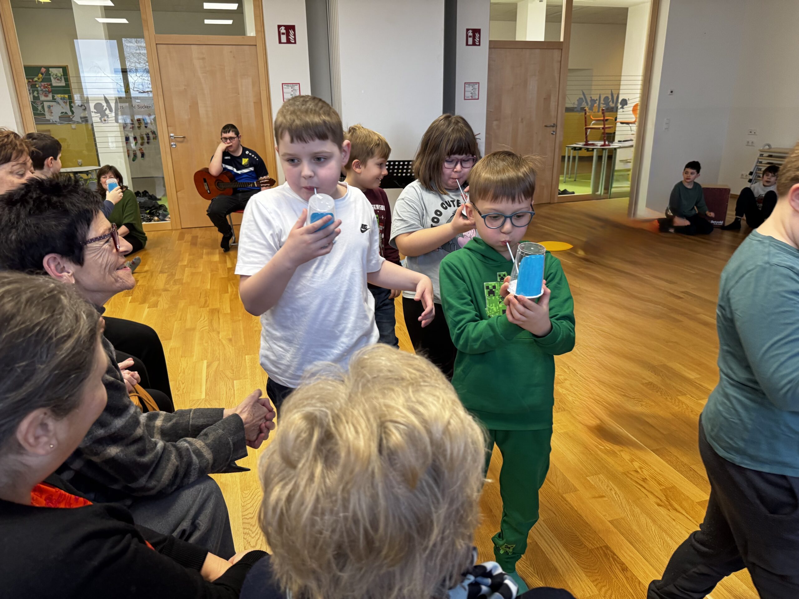 Sie sammelten diesen Betrag bei den 3 Lesungen, die sie jedes Jahr in der Stadtbibliothek St. Valentin  veranstalten. Umrandet wurde die Spendenübergabe mit zahlreichen musikalischen Darbietungen und der Präsentation von im Unterricht angefertigten Bildern und Bastelarbeiten.